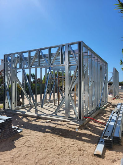 LSF (Light Steel Frame) construction is a system that uses lightweight galvanized steel profiles to form the building's structure, replacing materials such as concrete and iron. This method is characterized by its lightness, strength, and low material thickness, allowing for faster and more efficient construction. Furthermore, it offers great versatility in design and finishes.